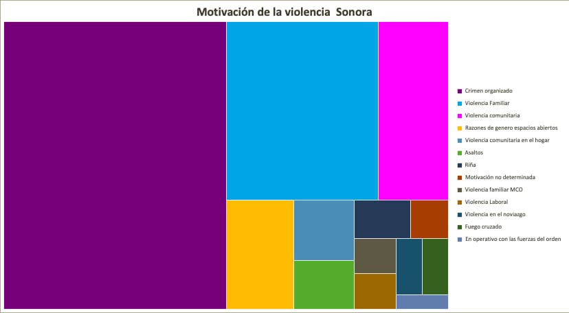 4.- Los estados donde se asesinan a mujeres son estados con fuerte presencia de crimen organizado, pero no son las únicas violencias a las que se enfrentan. Es una gráfica de la motivación de la violencia para Sonora.
