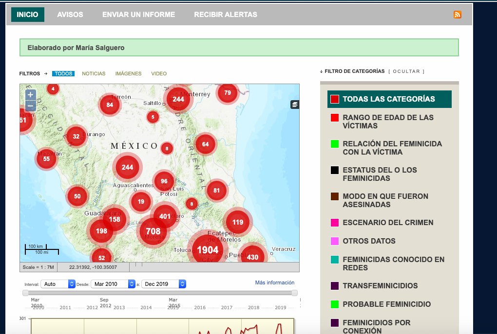 - Mapa Nacional de Feminicidios en México reportados por la prensa.